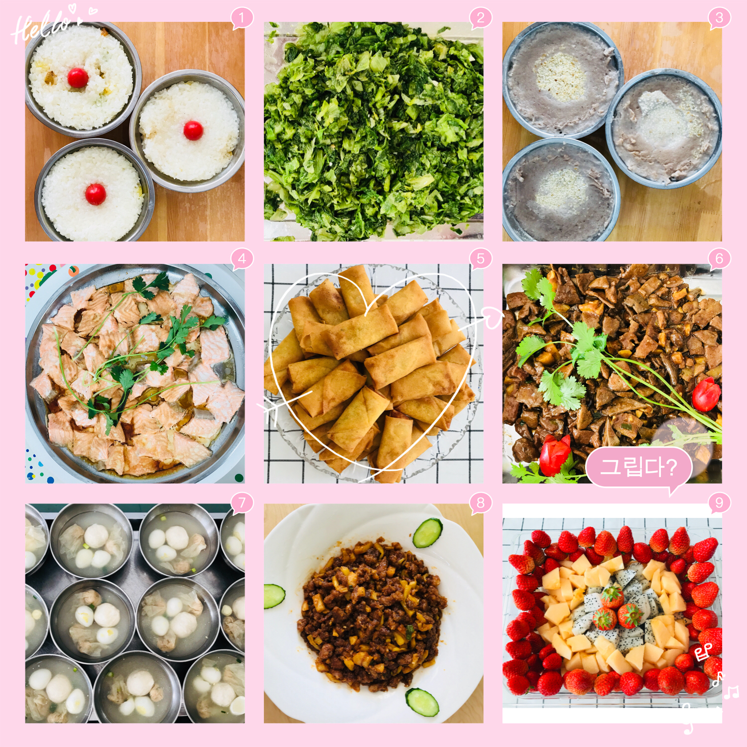 有美味的炸春卷,福州锅边,八宝饭,芋泥,油饼,鱼丸,肉燕,等小吃,还有荔枝肉,南煎肝,清蒸三文鱼,蒜香春菜,饭后水果,哇~好幸福!