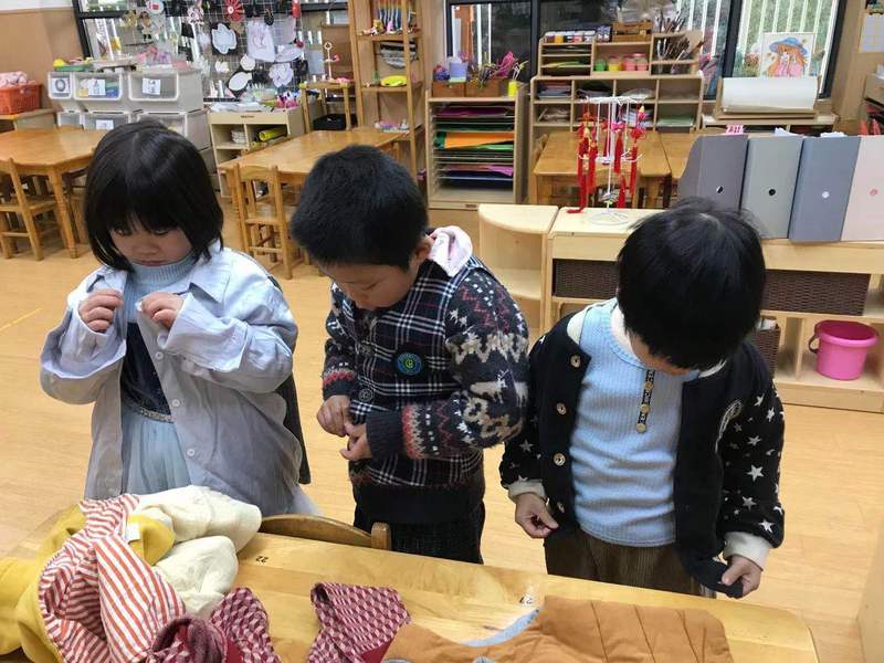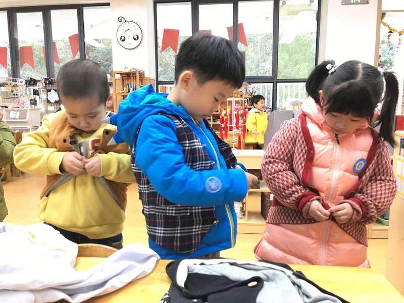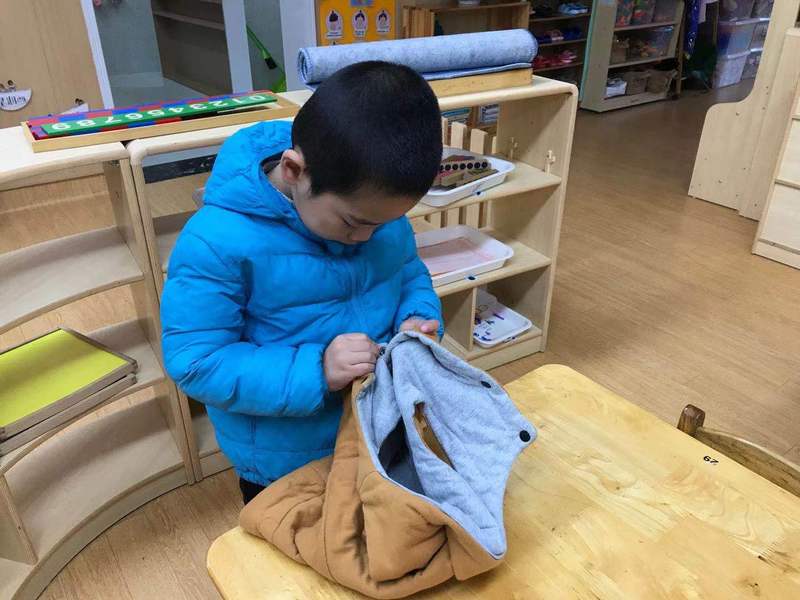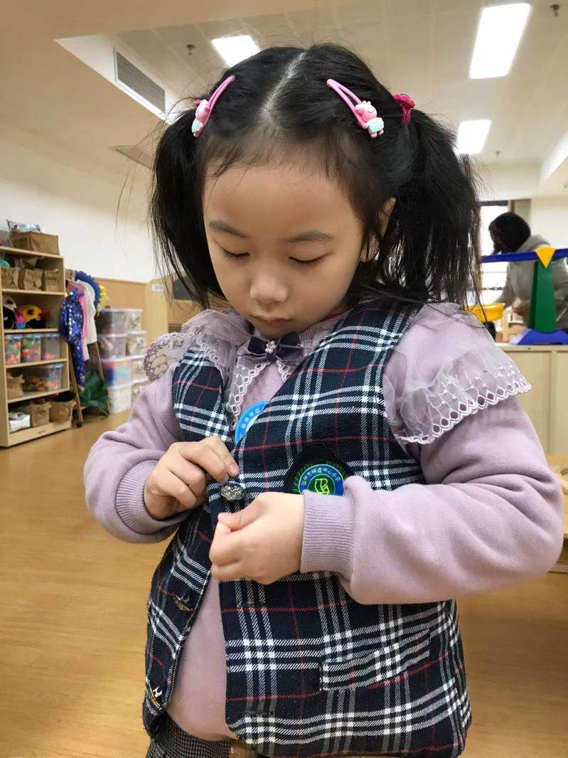 老师你快看,我会自己扣扣子啦!