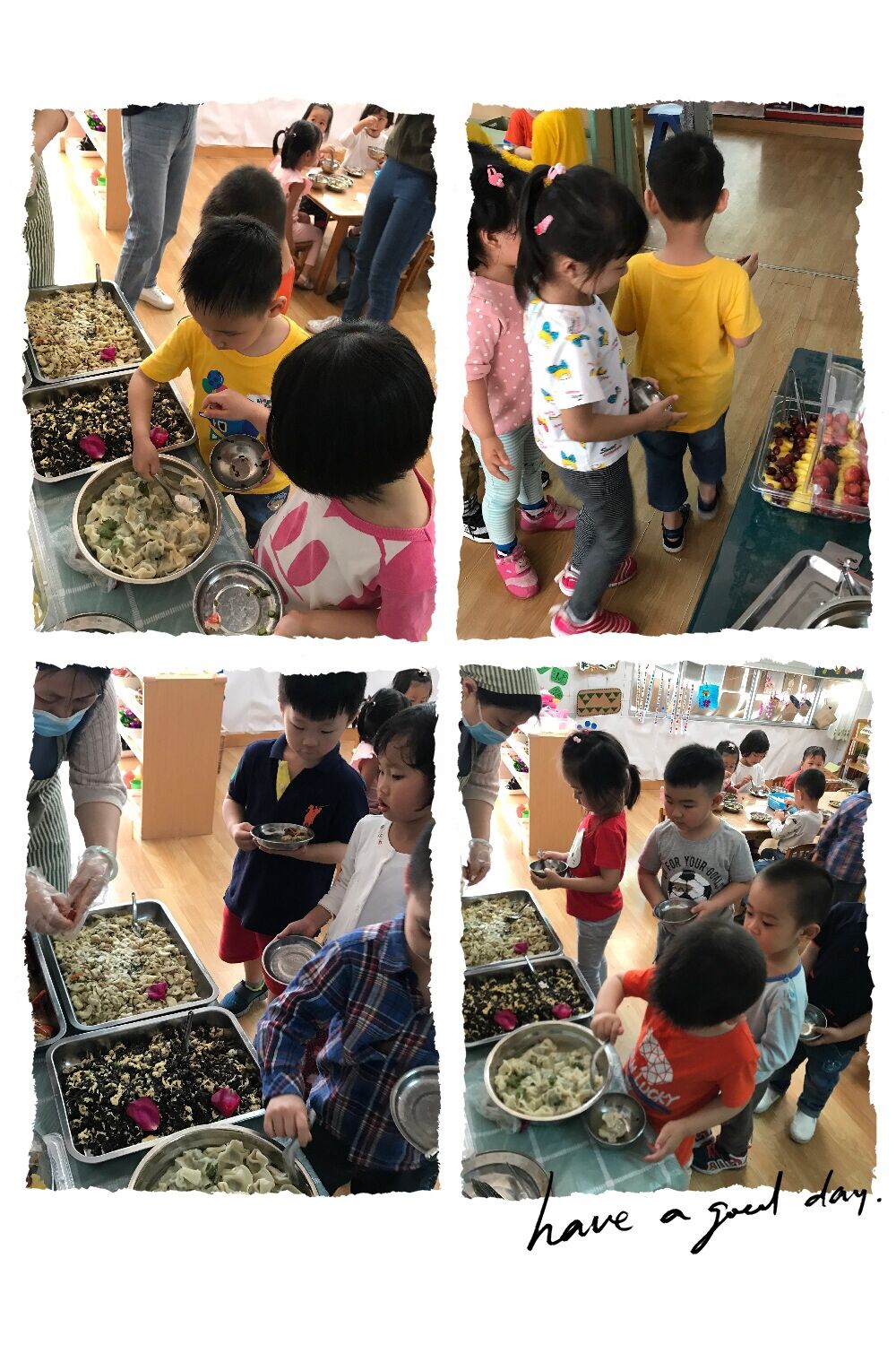 为了这场春日盛宴,洗、切、炒……食堂的叔叔阿姨们忙得不亦乐乎!所以今天的自助餐就比较迟,小朋友们表示好想吃到自助餐啊,都迫不及待了!