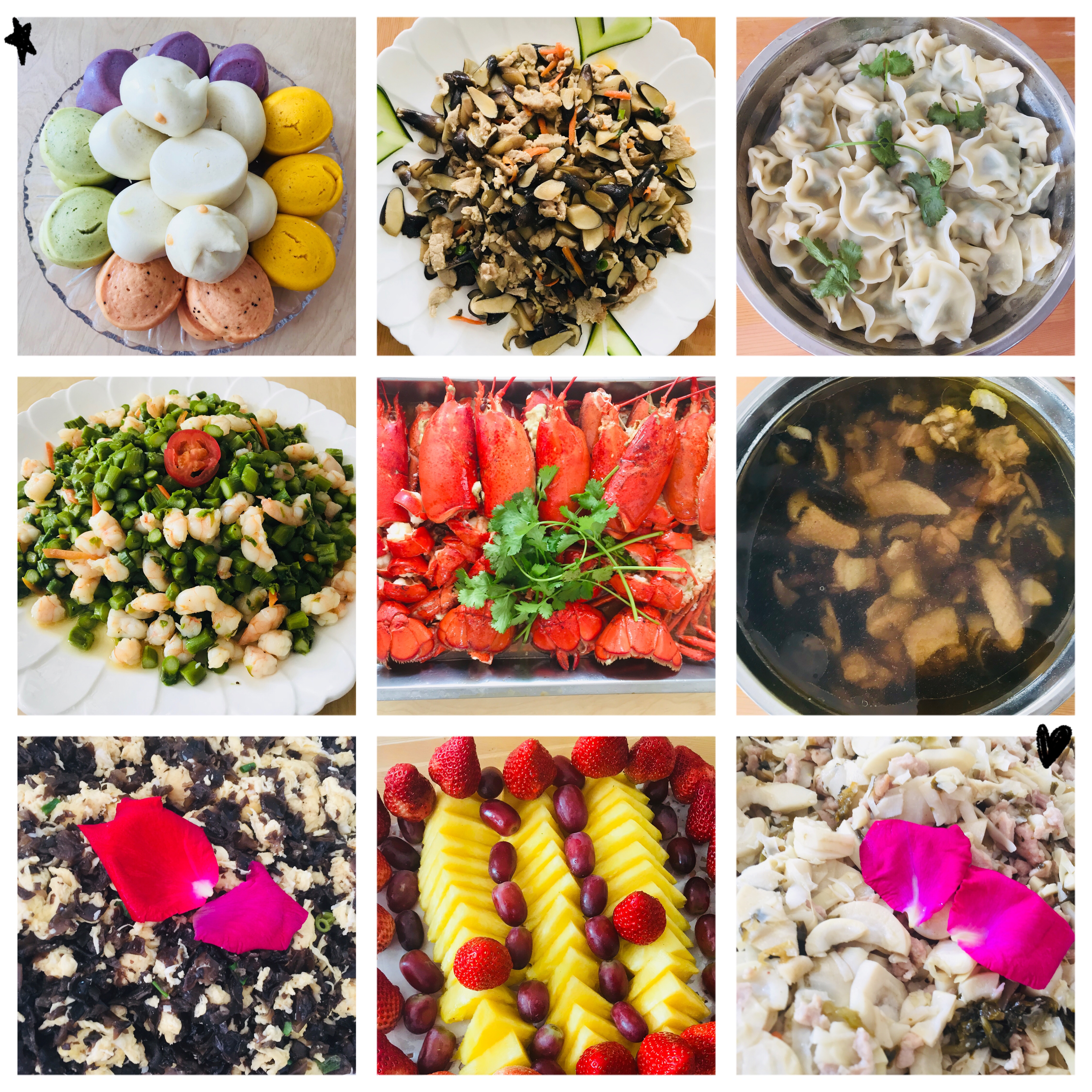鲜香美味的蘑菇,细嫩营养的芦笋,甜美多汁的草莓,鲜脆爽口的春笋……还有饺子,五彩馒头,大龙虾等,营养均衡。看完这菜单有没有很想吃的冲动呢?