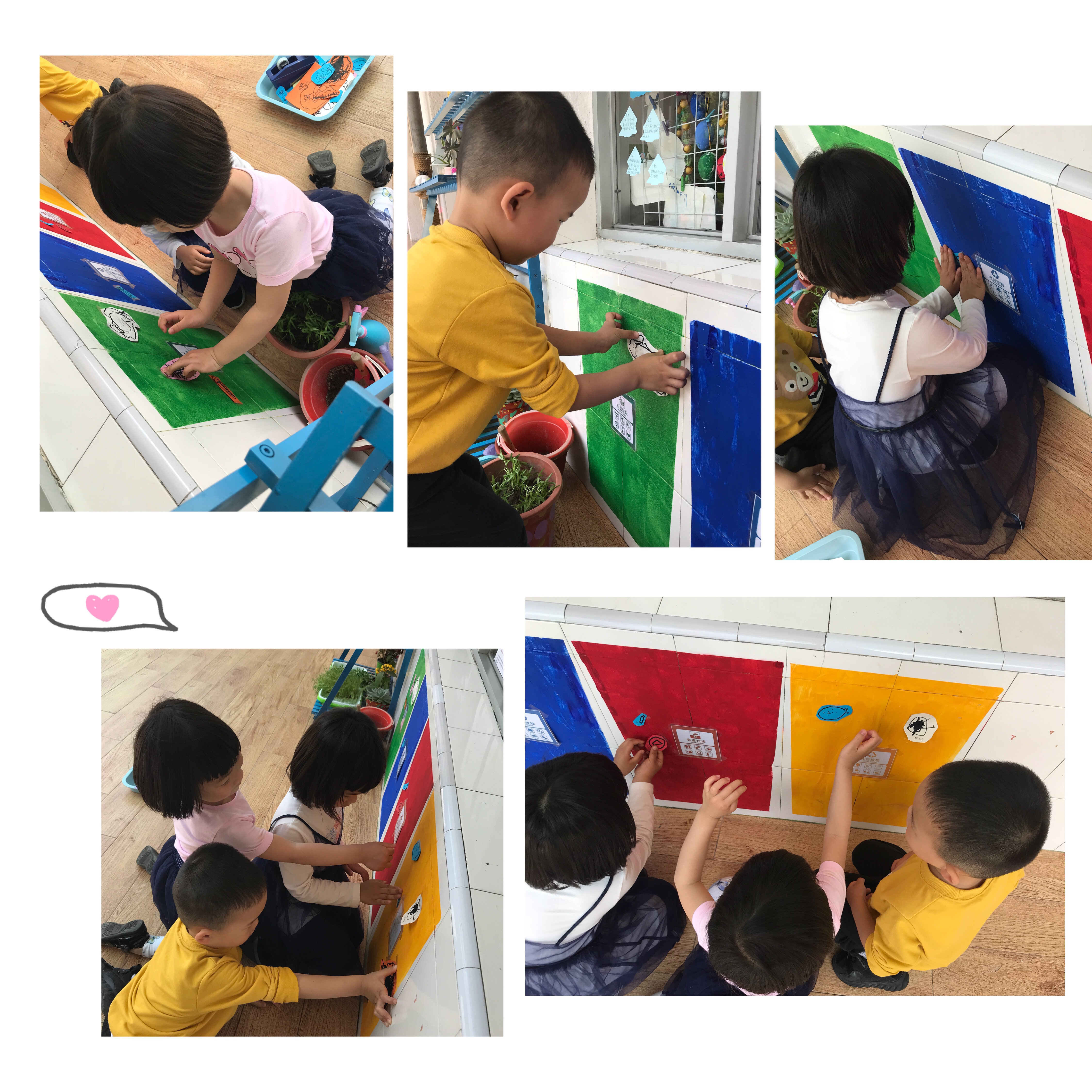 家长助教还提供了很多的垃圾卡片,小朋友们玩起了“贴垃圾”的游戏,孩子们在玩的过程中体验了分类垃圾的快乐体验。