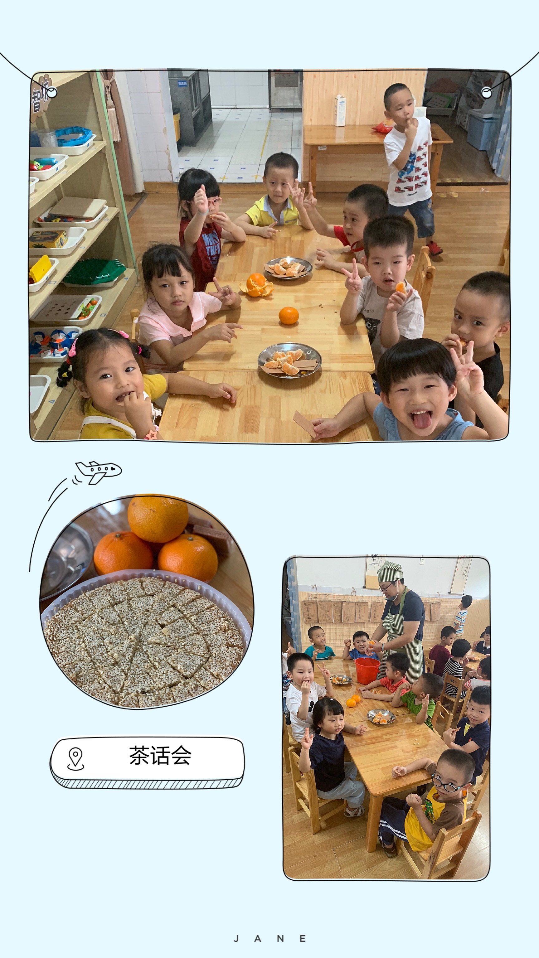 在班上,老师还组织了一场茶话会,像月亮一样大大甜甜的的月饼,我们全部把它吃光啦,还和我的好朋友一起自己动手剥橘子,吃山楂片,这个中秋真有趣!