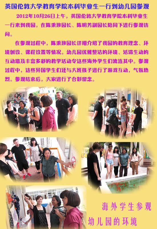 2012年英国伦敦大学教育学院本科毕业生一行到幼儿园参观