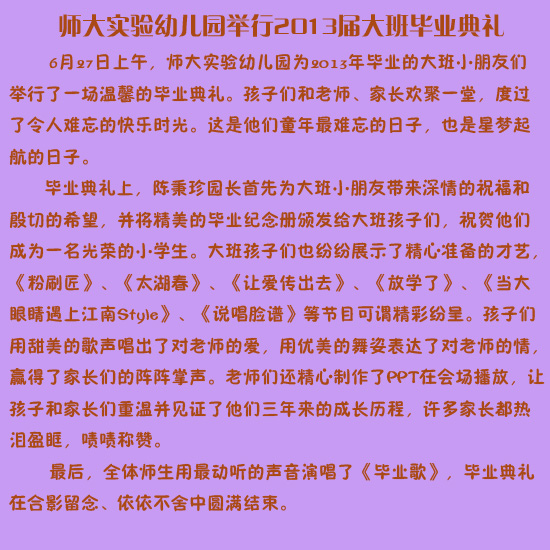 师大实验幼儿园举行2013届大班毕业典礼