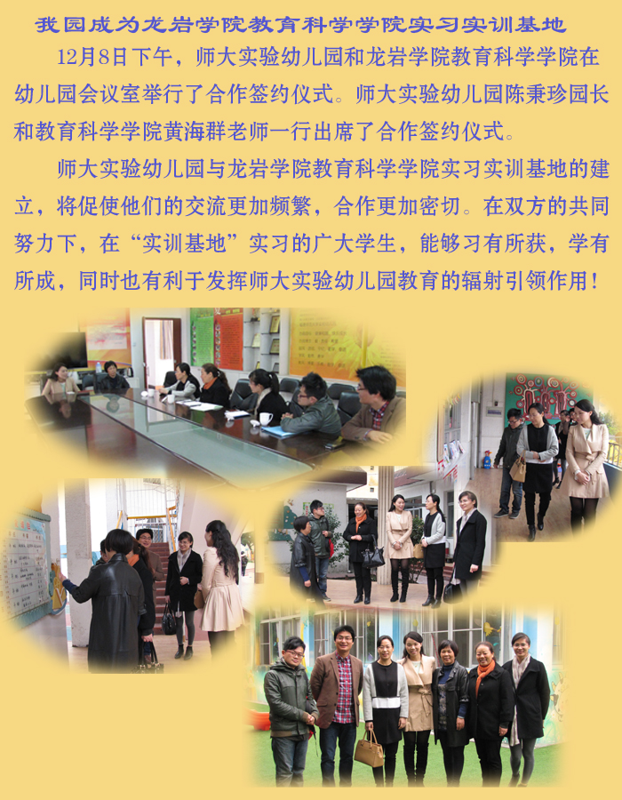 师大实验幼儿园成为龙岩学院教育科学学院实习实训基地
