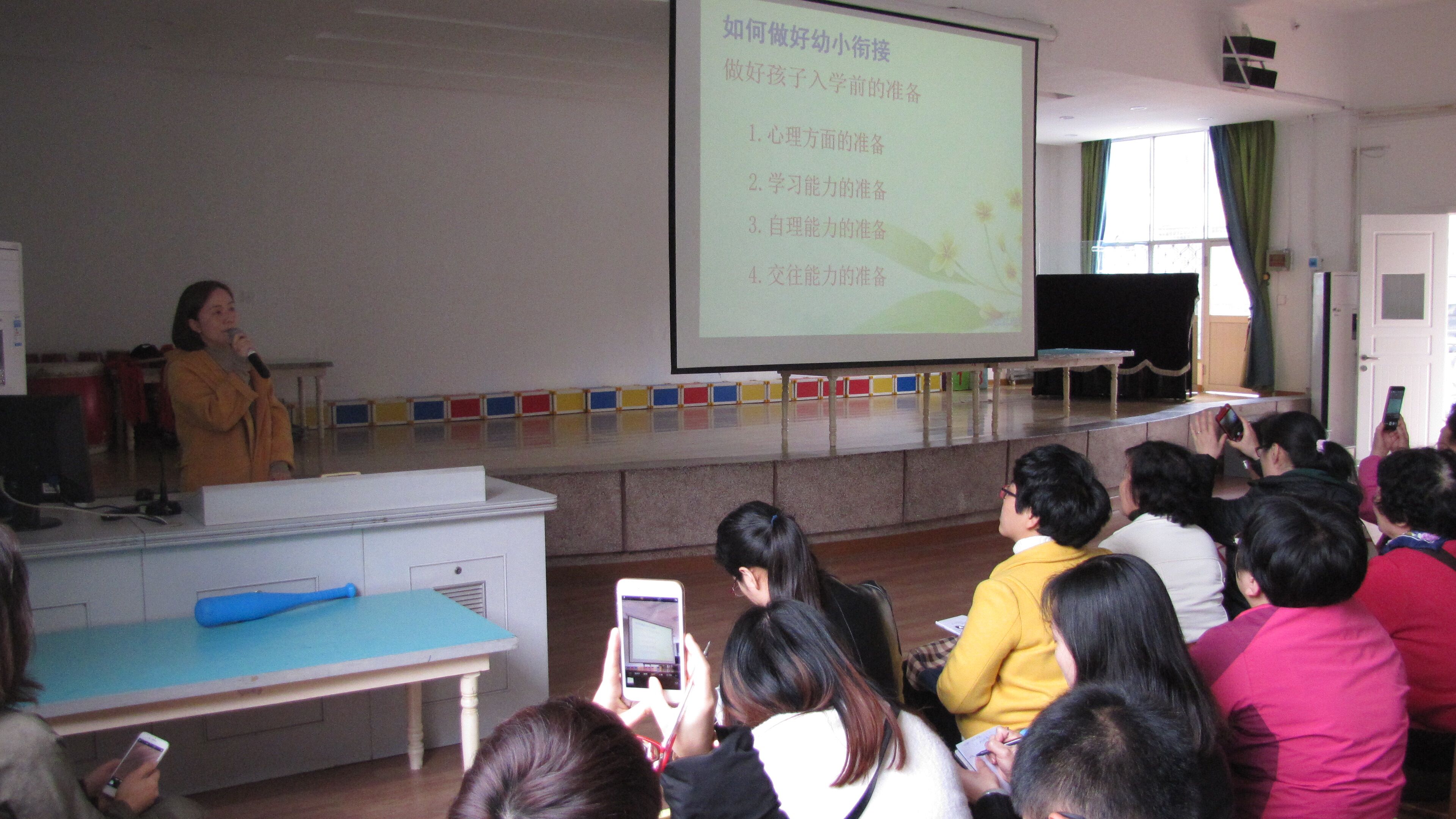 在讲座中李老师结合实例生动形象地为家长们讲述了幼儿园和小学在学习与生活上的差别,并告诉家长应当及时关注孩子的情绪变化,并注重培养孩子养成良好的生活、倾听、读书、交际等习惯。