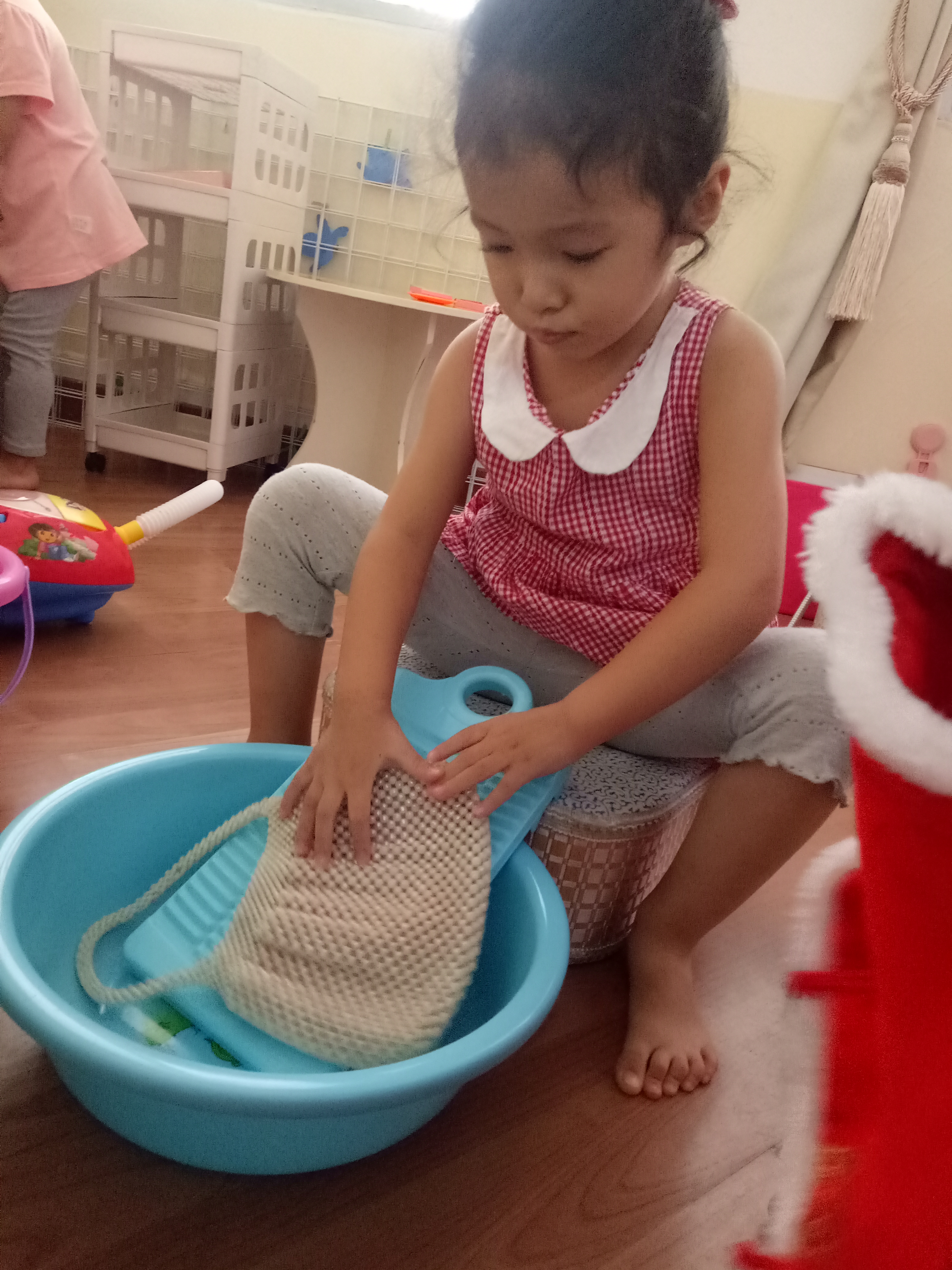 连“娃娃家”都变大了呢!还有帐篷,大桌子,我们可以在上面“用餐”,还有各种厨房玩具。哈哈,看我正在‘洗包包’,我自己动手是不是很厉害,哈哈,体验洗衣服真是太好玩了!虽然没有水,哈哈哈。。。