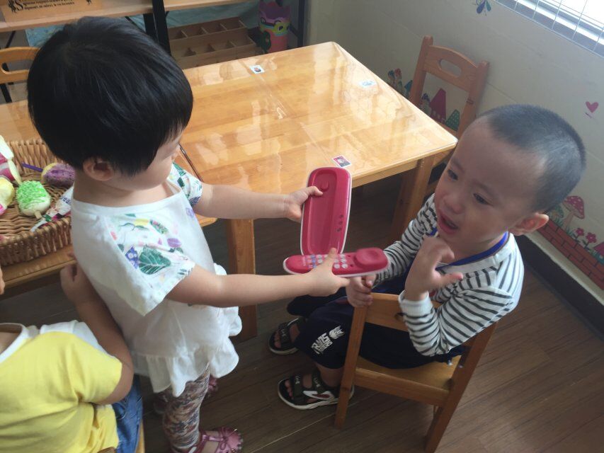 情景:A:“我要妈妈,我要妈妈,妈妈什么时候来啊。。。” B:“给你打电话吧”A:“好吧(开始打电话),妈妈你什么时候来啊?!”A:“妈妈下班就会来接你”。。。
