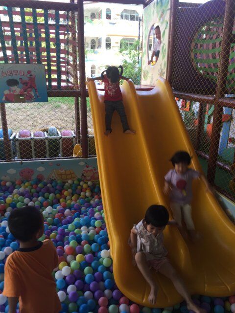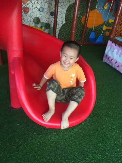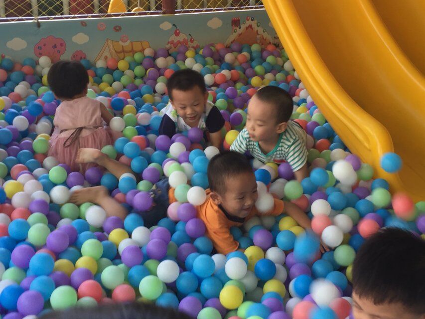 这里有好多好多海洋球,就好像泡泡一样,躺在里面软绵绵的真舒服!还有滑滑梯,有直行式的、有旋转式,哇!滑下来的感觉好像要飞起来了。