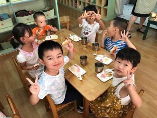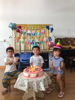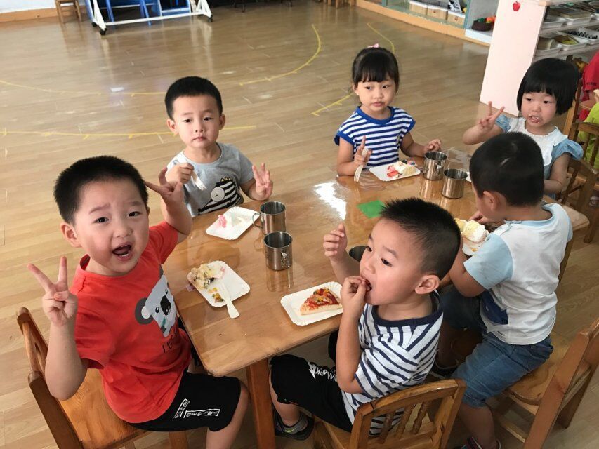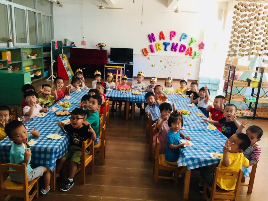 因为暑假没有上课,所以七八月份的小朋友也一起和九月的小朋友一起生日,是不是很热闹?大家吃的津津有味,听说每个月都会举办次的生日会后,大家都很期待自己的生日。